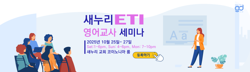 새누리 ETI 영어교사 세미나 페이지 정보 작성자 NCBC 조회 1회 작성일 25-10-03 18:23 목록 본문 관련링크 https://saenuri.churchcenter.com/registrations/events/3193008 0회 연결 다음글다락방 철야기도회 25.09.26 댓글 0 댓글목록 등록된 댓글이 없습니다. 목록