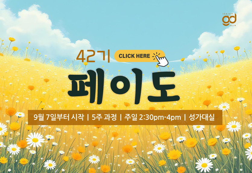 새가족 성경공부(페이도 42기) 안내 페이지 정보 작성자 NCBC 조회 27회 작성일 25-08-22 21:39 목록 본문 관련링크 https://docs.google.com/forms/d/e/1FAIpQLSeBm1E2hNMO7PhQ9El9_ms1S86oCY… 12회 연결 이전글2025-26 새누리 제자학교 신청서 25.08.22 다음글PSon Book _M 25.08.16 댓글 0 댓글목록 등록된 댓글이 없습니다. 목록