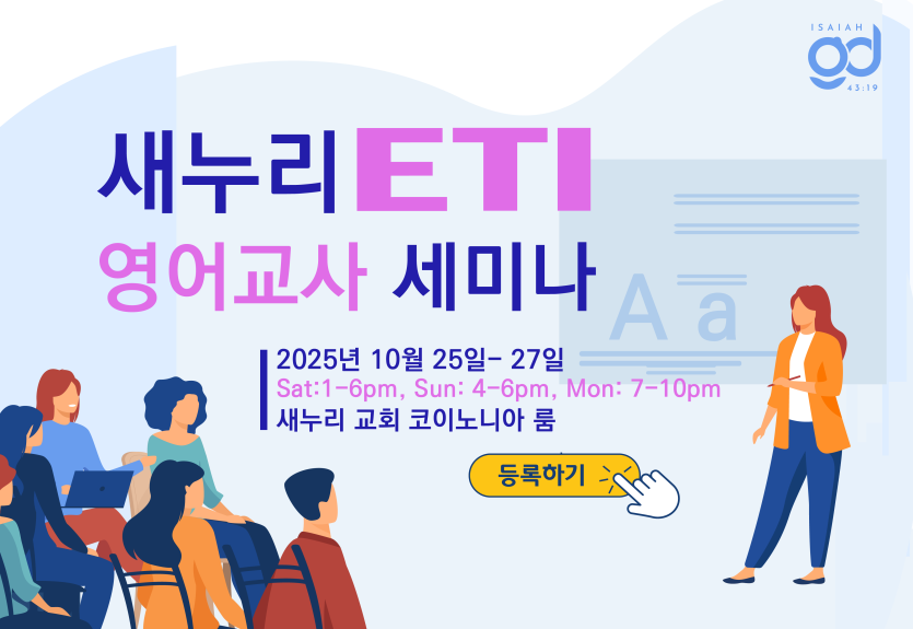 새누리 ETI 영어교사 세미나 페이지 정보 작성자 NCBC 조회 1회 작성일 25-10-03 18:25 목록 본문 관련링크 https://saenuri.churchcenter.com/registrations/events/3193008 0회 연결 다음글다락방 철야기도회 25.09.26 댓글 0 댓글목록 등록된 댓글이 없습니다. 목록