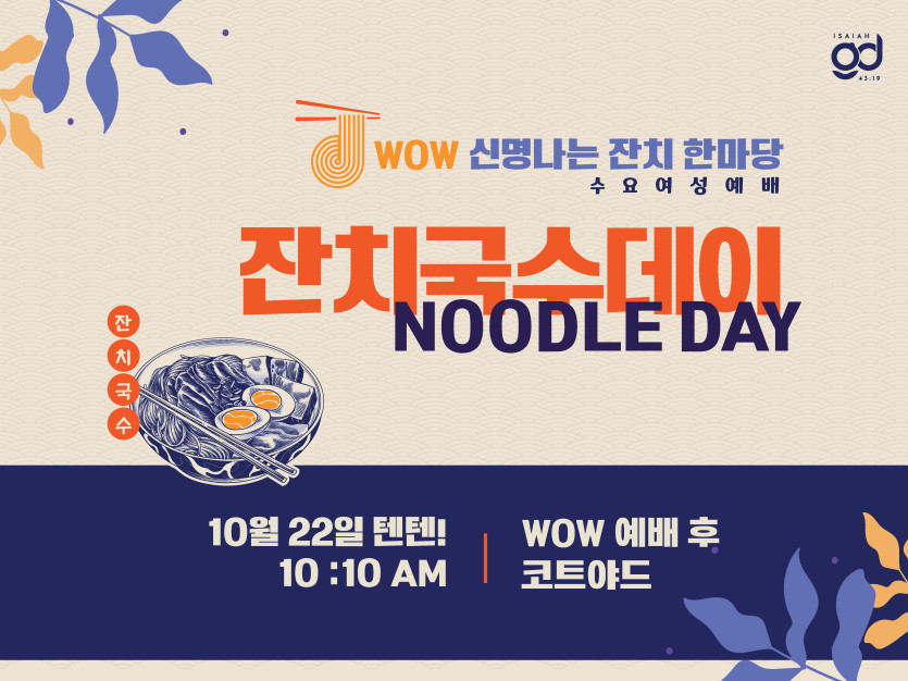 와우 여성예배 시즌 9 잔치국수데이! (10/22) 10:10am 예배후!
