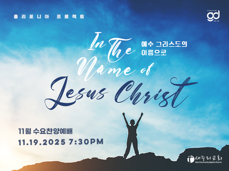 11월 수요찬양예배는 ‘홀리포니아 프로젝트’: ‘예수 그리스도의 이름으로’ 로 라는 주제로 드려집니다.